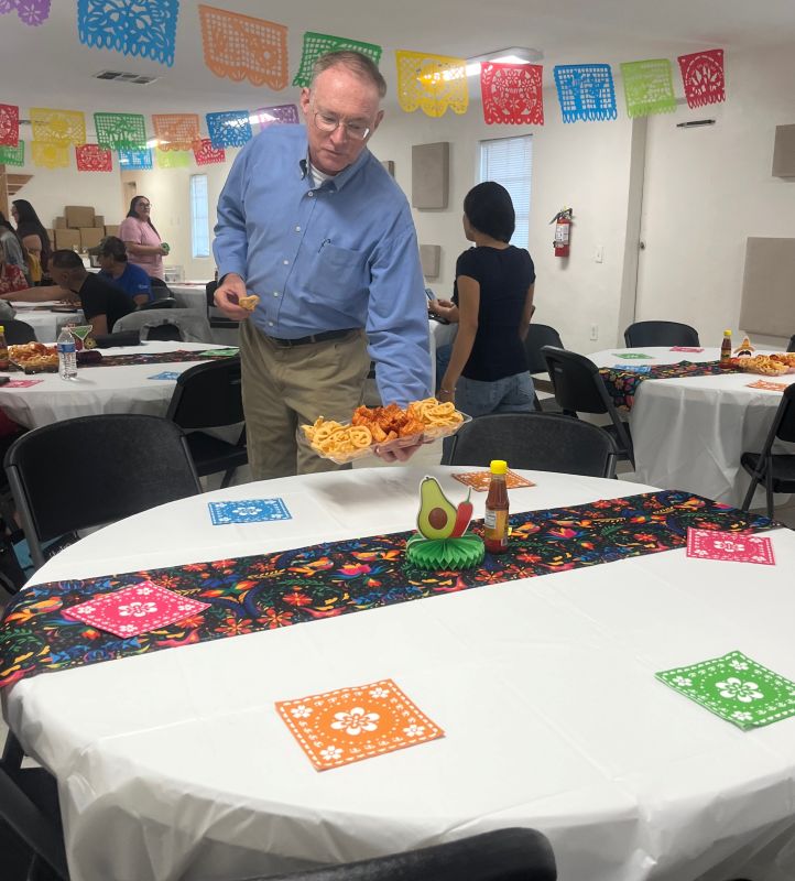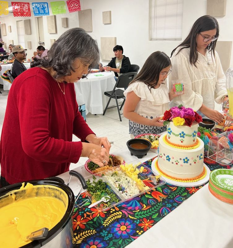 Dinner followed, beginning with self serve nachos and aguas frescas, then plates of tacos and rice. Laughter rolled through the room as people shared stories from the past year—moments from Servant Events, food distributions, worship gatherings, and quiet acts of kindness that rarely make it into photos but always make a difference.
